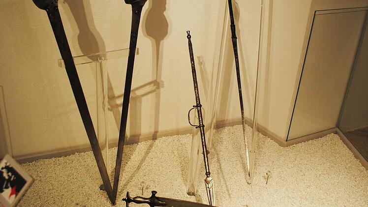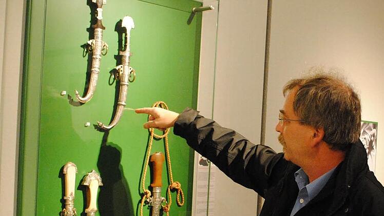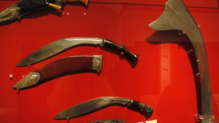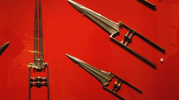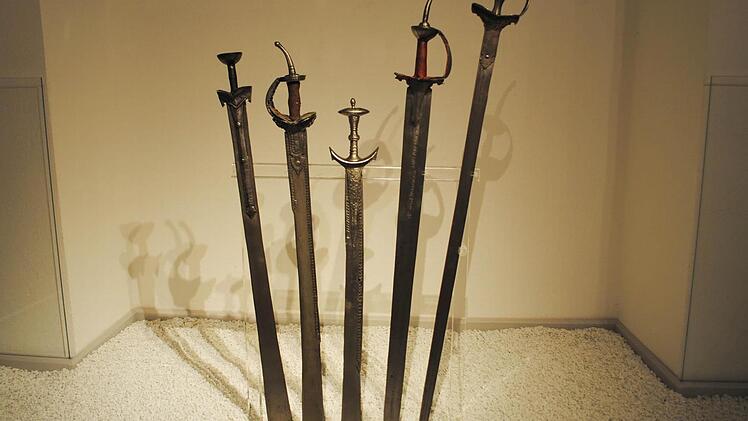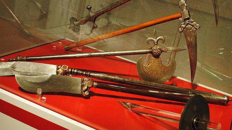 Auch wenn Geibig sagt, die Blutrünstigkeit der hier versammelten Waffen halte sich in Grenzen, viele wirken gerade im Kontrast von kunstvollster Gestaltung und Funktionalität ausgesprochen martialisch.