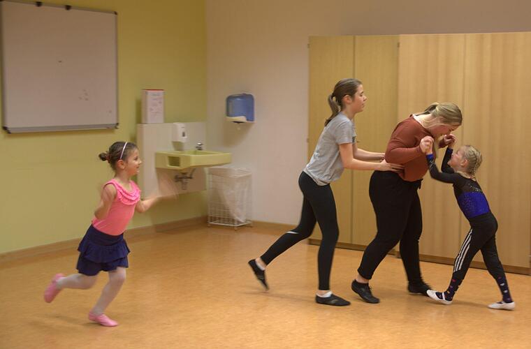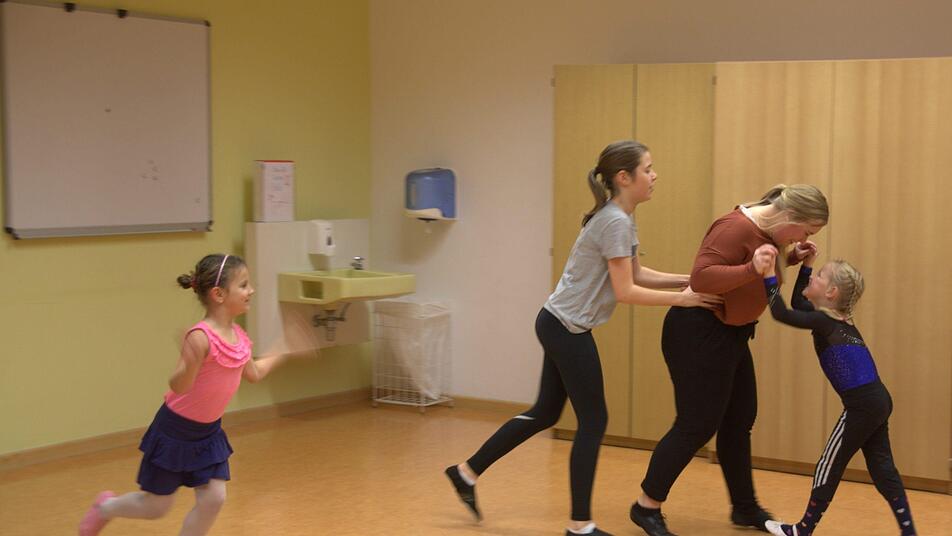 "Sie muss mutig sein, über Taktgefühl verfügen, Spaß an ihrer Rolle haben und gern im Mittelpunkt stehen", zählt Mia auf. Doch Laura bleibt skeptisch und würde sich am liebsten verstecken. Erst als Luisa sie fragt: "Was macht ihr denn beim Ballett?", taut die junge Seßlacherin langsam auf. Laura erläutert ein Fangspiel mit Hai und Sirene - und läuft kurz darauf mit Mia, Luisa und Merle kreuz und quer durch den Raum. Nach zwei weiteren Fangspielen mit Maus und Krake sowie Frosch und Meerjungfrau ist Laura dann so weit - und beteiligt sich ebenfalls am Tanzen.