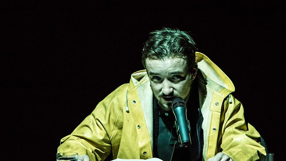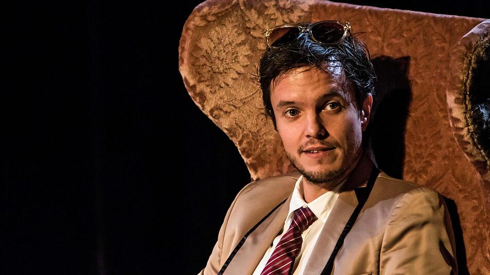 Benjamin Hübner gibt den Talkmaster mit ausgeprägter Vorliebe für Phrasen und Floskeln, der diese skurrile Vorstellungsrunde moderiert.