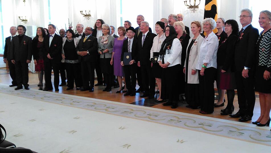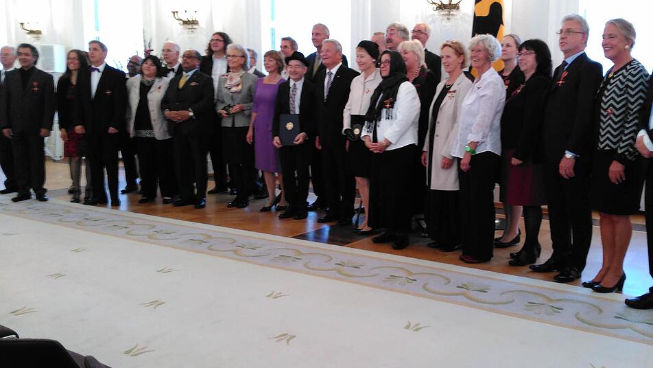 Das Bundesverdienstkreuz ist aber nicht die erste hohe Auszeichnung für Sie, stimmt's?2001 hab' ich vom damaligen Bundespräsidenten Johannes Rau die Verdienstmedaille der BRD bekommen. Aber damals hatte ich kein Geld, nach Berlin zu fahren, also hat die Kitzinger Landrätin sie mir stellvertretend verliehen.