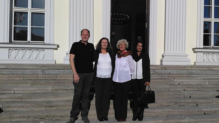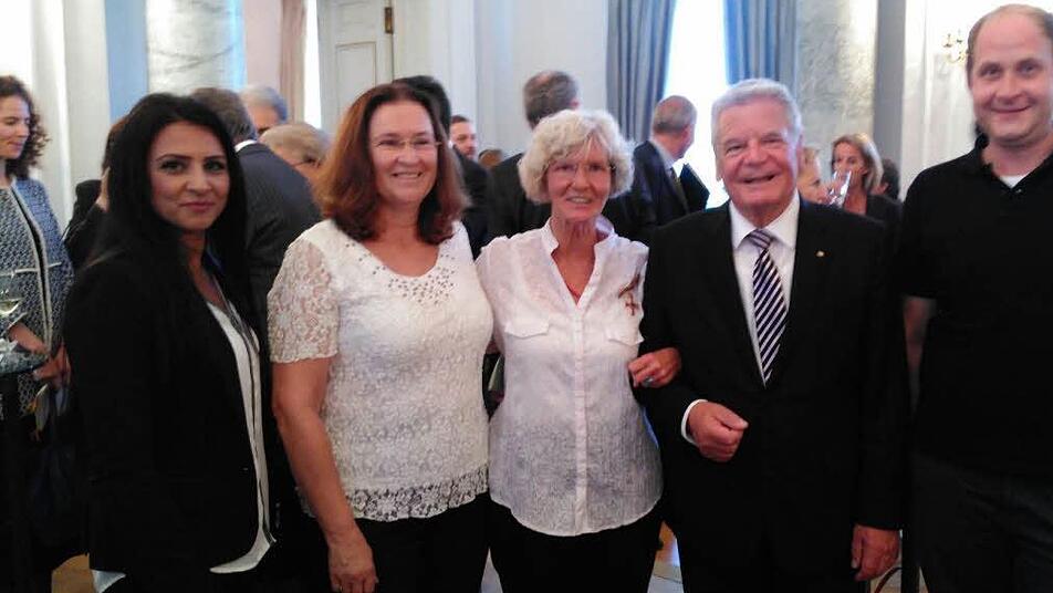 Wie? Normalerweise wird doch höchstens noch der Ehepartner mit zur Ehrung eingeladen, oder? Ja! Ich war die Einzige, die ihre Bande mit angemeldet hat, meine treuesten Helfer Sina Sadat, Martin Hering und Petra Nellen. Meine Tochter Sabine ist zuhause geblieben, weil jemand auf meine beiden Hunde aufpassen musste. Der Bundespräsident hat zu mir gesagt: "Es ist toll, dass Sie Ihr Team mitgebracht haben."