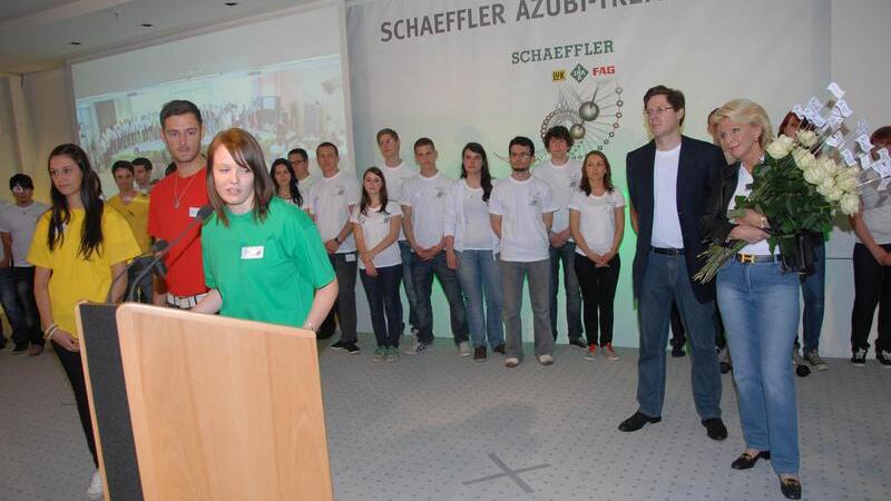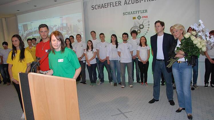 Sie hören, dass für Maria-Elisabeth Schaeffler das Wort Stolz vor allem an diesem Tag eine sehr große Rolle spiele und wie sie die Qualität der Ausbildung lobt. Wie sie die jungen Menschen ermuntert, sich zu interessieren für die Kollegen an den anderen Standorten, für die weltweit 74 000 Mitarbeiter. Wie sie an den Lieblingsspruch ihres Ehemannes Georg Schaeffler erinnerte: "Man muss bei allem und jedem über den Tellerrand hinausblicken." Danach erklärt Personal-Vorstand Kurt Mirlach die DNA des Unternehmens, das neben anderen Werten auch auf Teamgeist und Fairness, auf Respekt und Loyalität setzt.