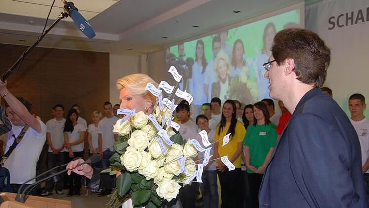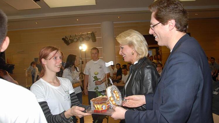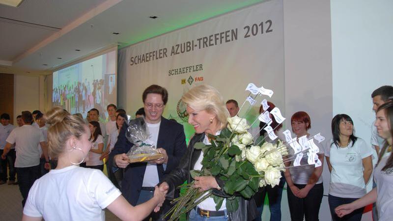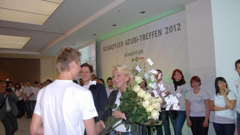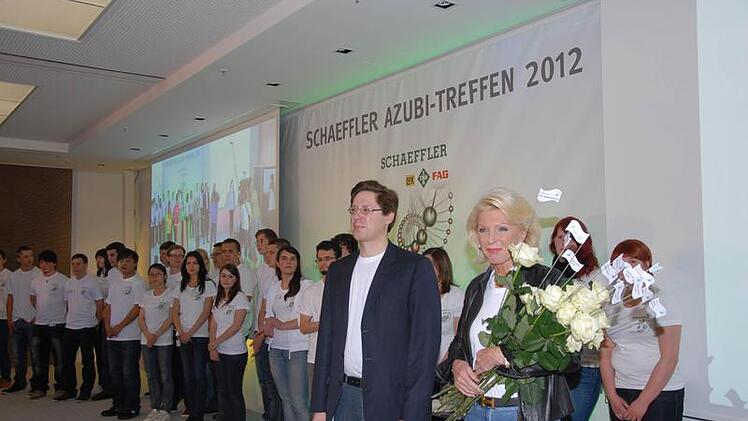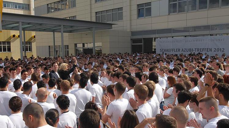 Maria-Elisabeth Schaeffler nimmt das Bad in der Menge. Wenn es um ihre Mitarbeiter geht, und da besonders um die Auszubildenden, ist sie gern mitten unter ihnen. Am Mittwoch mischte sie sich gleich mehrfach unter die Leute. Zunächst ein paar Minuten zum Gruppenfoto mit allen 1200 Teilnehmern, die in diesen Tagen das große Azubitreffen am Heimatstandort besuchen, zum Auftakt des großen Azuibitags am Morgen. Und anschließend der persönliche Kontakt zu den Abgesandten der 29 Standorte aus acht Ländern, die zum Camp angereist waren. Später wird sie gerührt sagen: "Wir sind die große Schaeffler-Familie, die wir immer waren." Und dafür stehende Ovationen der weit mehr als tausend Gäste im Kongresszentrum ernten.