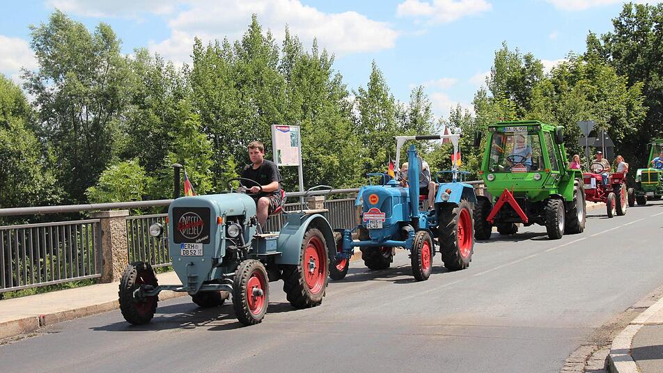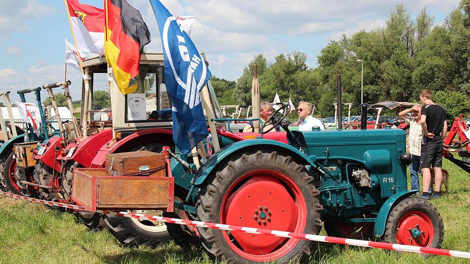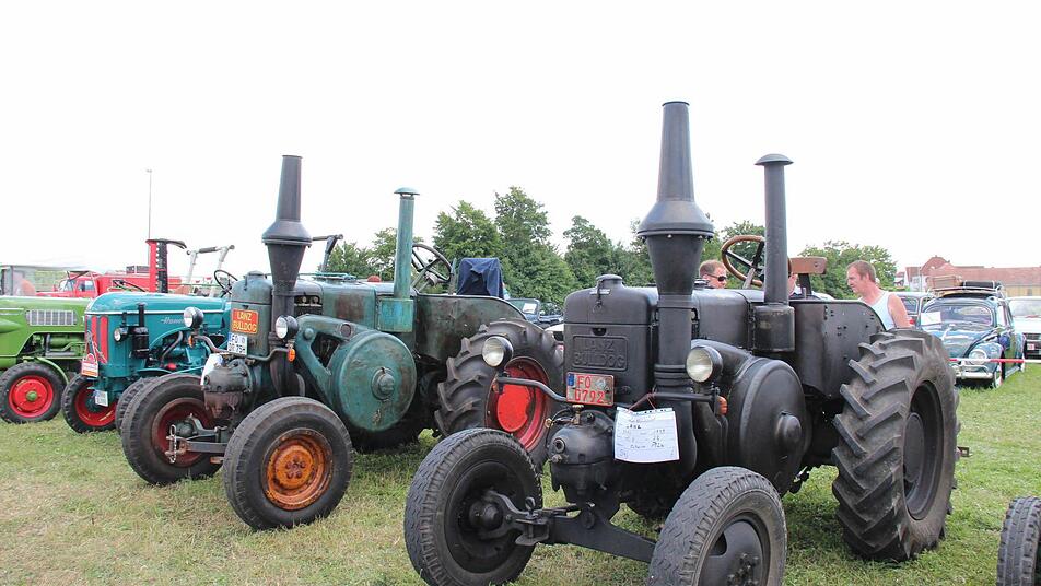 Auf dem Aischer Festplatz konnten am Sonntag zahlreiche Oldies bestaunt werden. Autos, Traktoren, Krafträder und landwirtschaftliche Maschinen zogen im Konvoi durch den Ort.