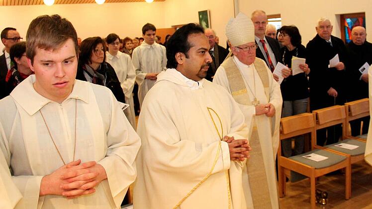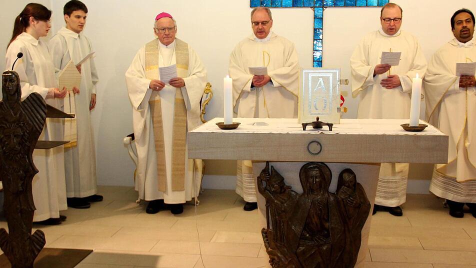 "Ich freue mich, dass so viele heute den Weg zu unserer Hedwigs-Kapelle gefunden haben.", so Dekan Kilian Kemmer in seiner Begrüßung. "Damals vor 20 Jahren war es ein besonders kalter Tag.", erzählte er. "Es gab zwei schlimme Stürze und der Fahrer des Weihbischofes streute Salz auf den Weg von der Grundschule zum Kindergarten.", verriet er schmunzelnd. Eine weitere Erinnerung an die Altarweihe hat bis heute Spuren hinterlassen. "Dort, wo an den gesalbten Stellen Weihrauch und Wachs entzündet worden ist, erkennt man immer noch die Flecken.", meinte der Dekan. Der heute 78jährige emeritierte Weihbischof war extra von Nürnberg nach Höchstadt gekommen.