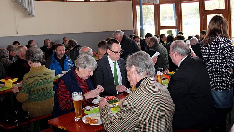 Bürgermeister Gerald Brehm (JL) durfte unter den Gratulanten nicht fehlen. "Damals war ich noch im Gemeinderat.", erzählte er. Den Höchstadter Ehrenbürger Alois Schell (ehemaliger zweiter Bürgermeister und über 30 Jahre Stadtrat) erwähnte er unter vielen anderen Gästen. "Lieber Alois, auch dein kirchliches Engagement beim Bau dieser Kapelle und des Kindergartens dürfen wir nicht vergessen! Danke!"