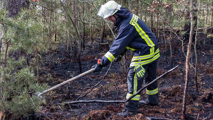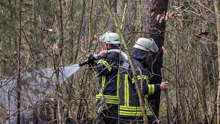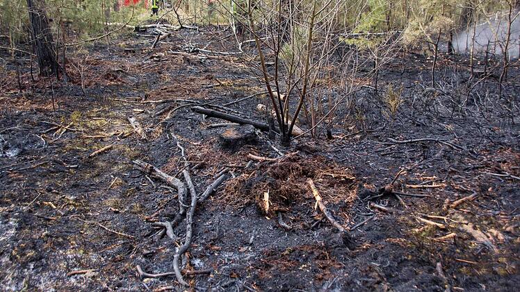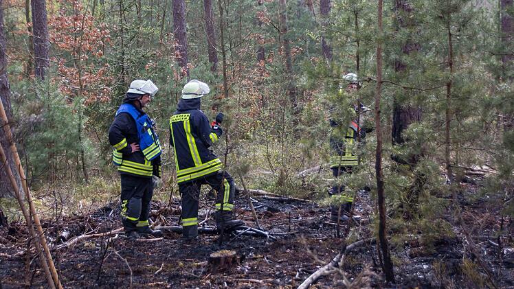 Zu einem Waldbrand im Tennenloher Forst in Tennenlohe wurden am Montagnachmittag zahlreichen Kräfte der umliegenden Feuerwehren alarmiert. Spaziergänger hatten Rauch über dem Waldstück entdeckt und die Rettungskräfte verständigt. Auf einer Gesamtfläche von 50 auf 60 Metern brannte der dortige Waldboden, weshalb die Kräfte mit insgesamt vier C-Rohren im Einsatz waren, um den brennenden Boden aus trockenem Laub und Ästen zu löschen.
