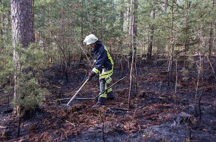 Aufgrund der Örtlichkeit und der dort fehlenden Hydranten wurde ein sogenannter Pendelverkehr mit mehreren Tanklöschfahrzeugen eingerichtet, um die benötigten großen Mengen an Löschwasser an der Einsatzstelle zu gewährleisten. Die Kräfte der Feuerwehren waren bis in die Abendstunden damit beschäftigt, den Waldboden aufzukratzen und Glutnester zu beseitigen.