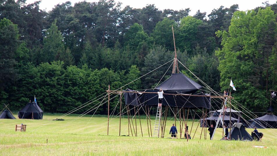 Das zehnte Großlager des Deutschen Pfadfinderverbands mit rund 4000 Pfadfindern wirft im Aischgrund seine Schatten voraus. Die schwarzen Zelte stehen bereits.