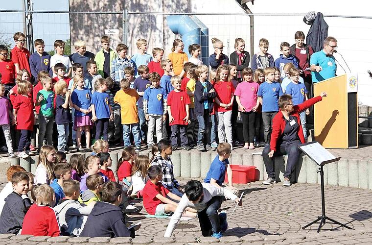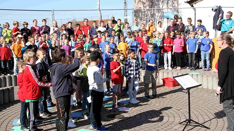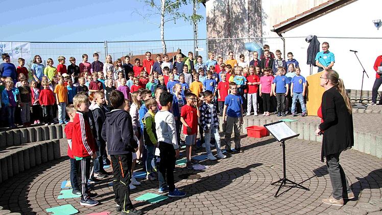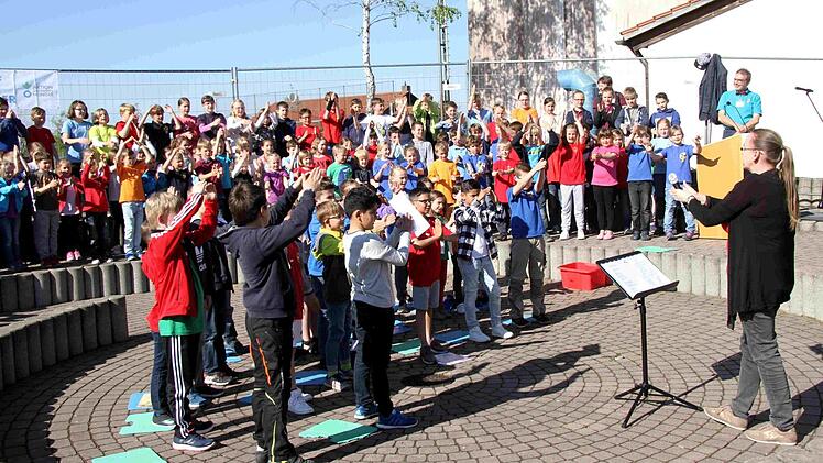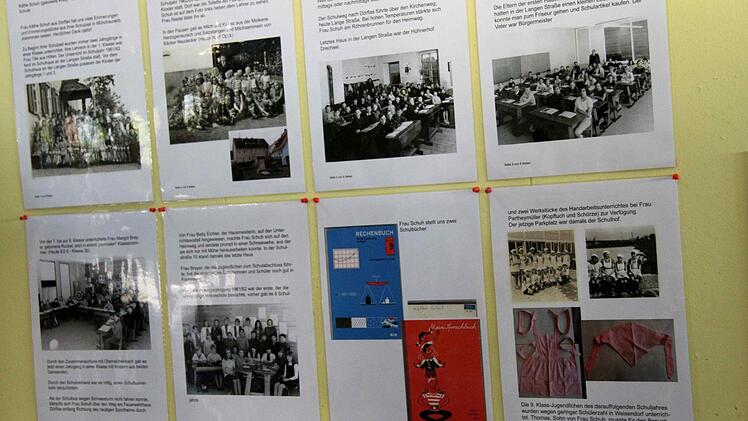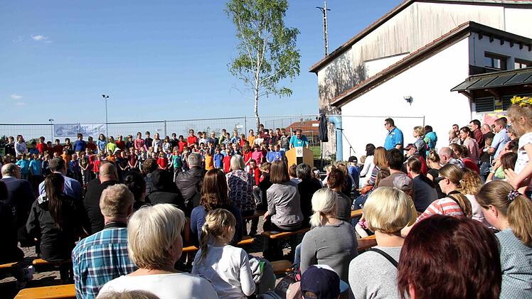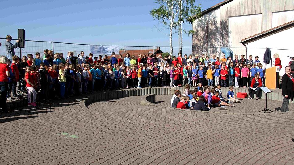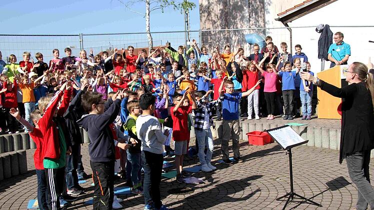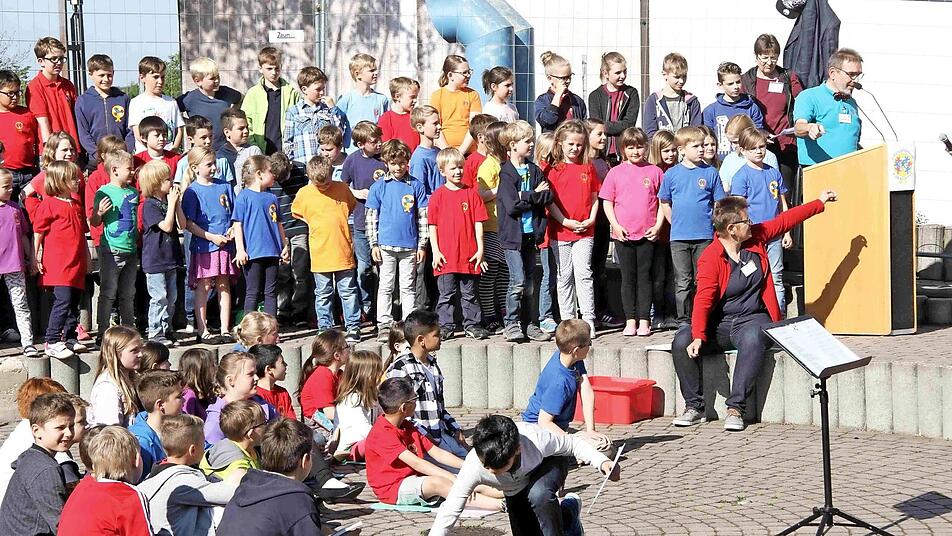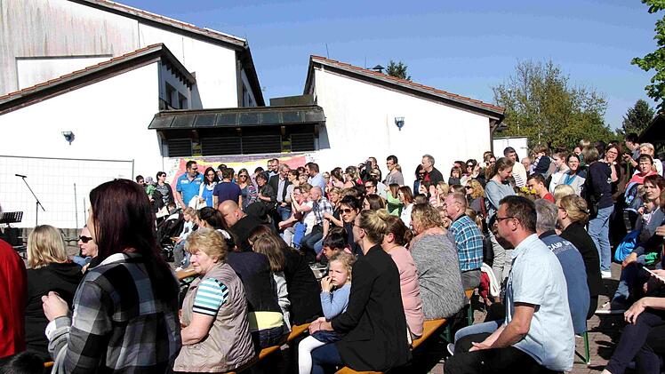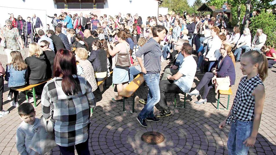 Fast jeder der vielen Gäste wird von den bereits eingetroffenen Teilnehmern der Feier überschwänglich begrüßt. So begann die bunte Feier, die neben den Reden des Rektors und von Bürgermeister Klaus Schumann von den Schülern gestaltet wurde. Die Kinder unterhielten mit Liedern und Sketchen aus dem Schulalltag sowie auch mit Witzen über Schule und Unterricht. Begleitend zur fröhlichen Feier gab es im Schulgebäude eine Ausstellung über die Geschichte der Schule in Münchaurach und in den Klassenräumen wurden Ausstellungen und Aktionen gezeigt.