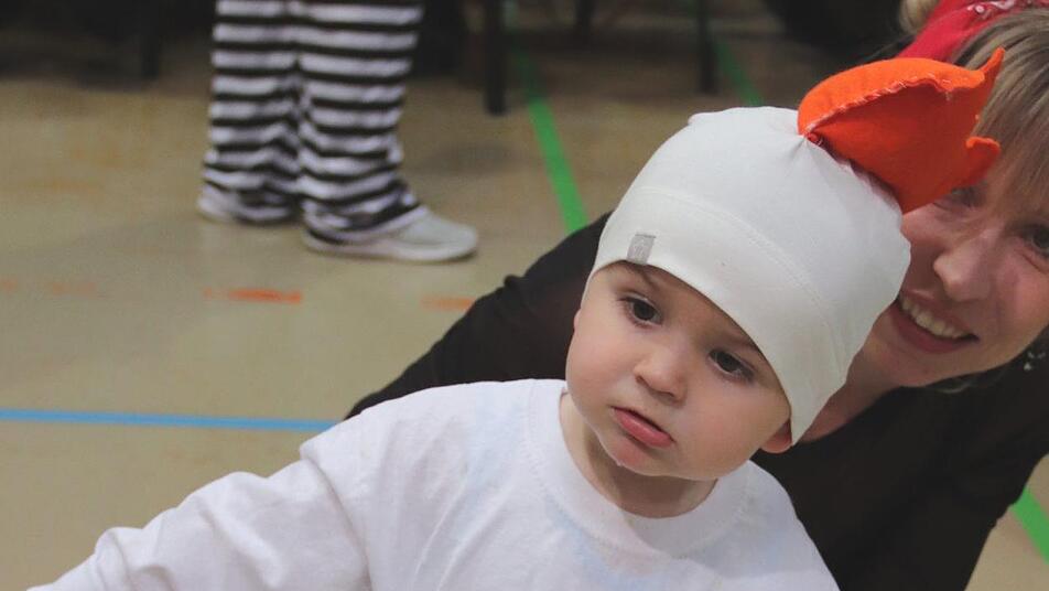 DJ Matze stand wieder am Mischpult, führte durchs Programm und führte die Polonaise an. Da konnte wirklich gar nichts schief gehen. So war die Stimmung in der Halle einfach super und es gab auch genug Platz zum Tanzen, zum Toben, zum Kämpfen und Schießen für die energiegeladenen kleinen Faschingsnarren. "Heut' ist ein schöner Tag", schallte es aus den Lautsprechern. Auch wenn es draußen grau und trüb war, in der Halle schien die Faschingssonne.