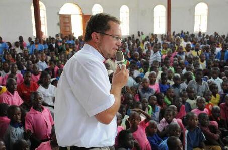 In Busagula fanden sich laut Rebhan über 1000 singende und tanzende Menschen zur Willkommensfeier auf einer staubigen Straße ein.