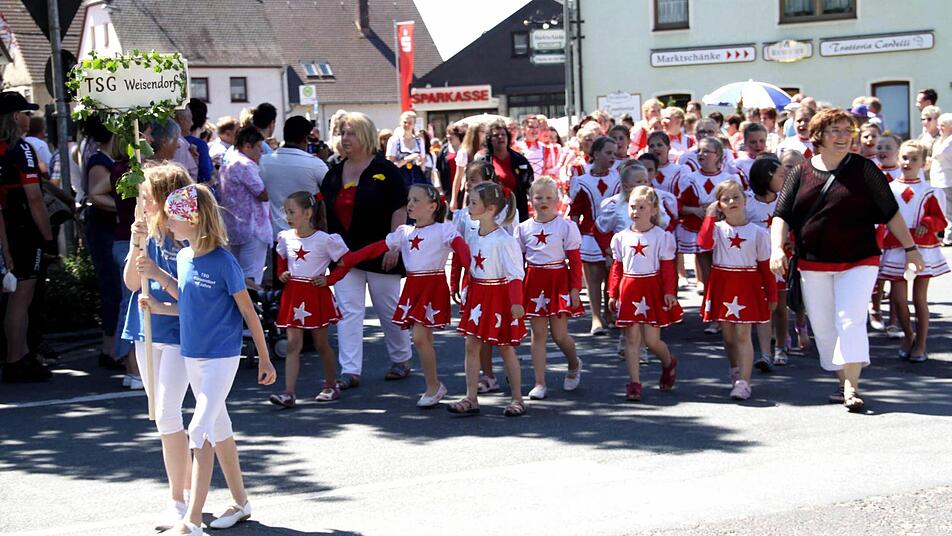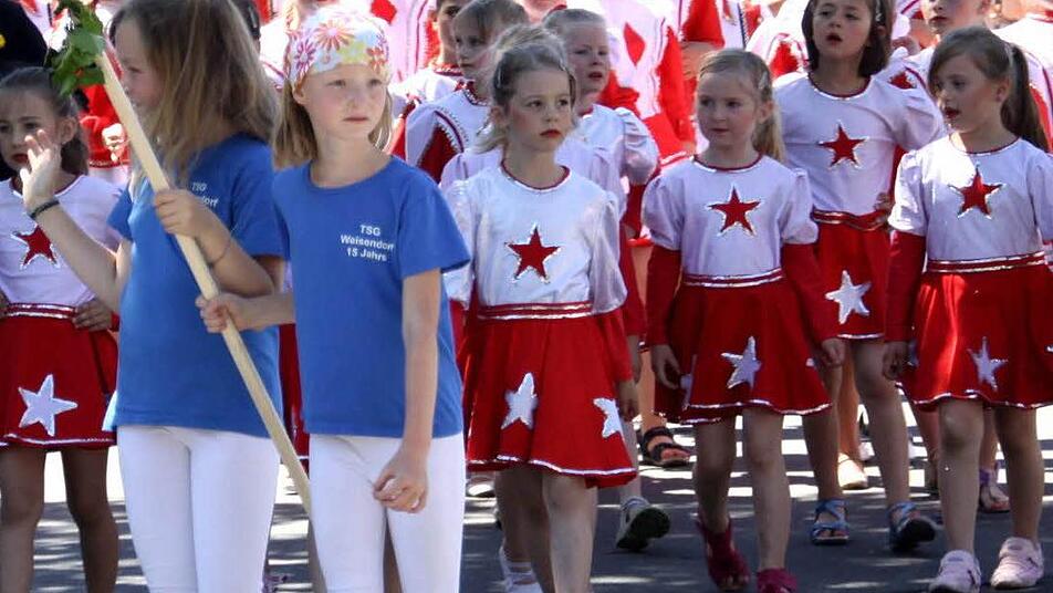 Bürgermeister Alexander Tritthart zeigte sich glücklich. "Wir haben zum Festzug über 1100 Teilnehmer, das ist eine tolle Sache unserer Vereine sowie der Bürgerinnen und Bürger", freute sich der Bürgermeister. Angefangen von den Kindertagesstätten über die Schule bis hin zu den Bulldoggfreunden und der Weisendorfer Feuerwehren war alles vertreten.