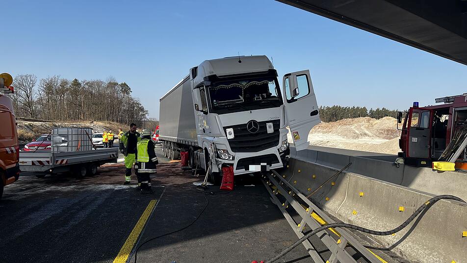 Lastwagen kommt auf A3 von Fahrbahn ab