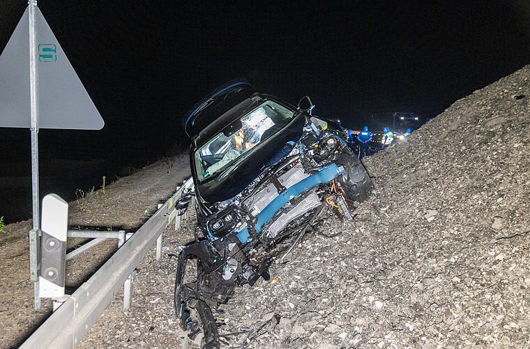 Rentnerin auf A3 verletzt in Auto eingeklemmt: In Schräglage auf Kieshaufen gefahren