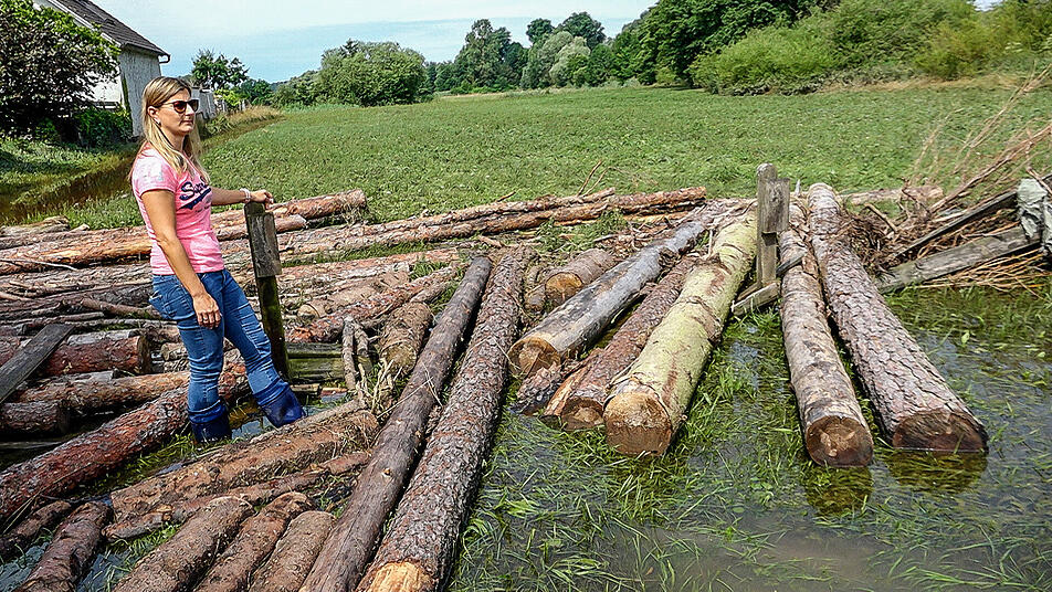 Das Hochwasser am Samstag (10.07.2021) hat Adelsdorf (Landkreis Erlangen-Höchstadt) heftig getroffen. Die Menschen in der Gemeinde sind auch noch Tage später geschockt. Wie Anwohnerin Carmen Jahreis-Ley, die eigentlich geschützt wohnt.