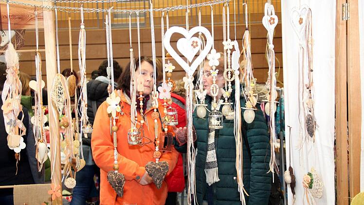 "Den Markt hat damals die Mutter-Kind-Gruppe organisiert und so um das Jahr 1995 hatte er zum letzten Mal stattgefunden", weiß eine Ausstellerin, die schon seinerzeit mit ihrem Stand für selbst gebastelte Osterdekoration dabei war. Das Angebot reichte von Natur- und Kunstgestecken, Arbeiten aus Beton, Holz, Filz und Wolle über außergewöhnlichen Schmuck, Patchwork und Stick- und Strickwaren bis hin zu selbst gefertigten Etageren, Lampen und Leuchten. Die Aussteller kamen aus Adelsdorf, Höchstadt, Röttenbach, Hirschaid und sogar aus Weikersheim bei Bad Mergentheim, aus Markt Erlbach und aus Nürnberg.