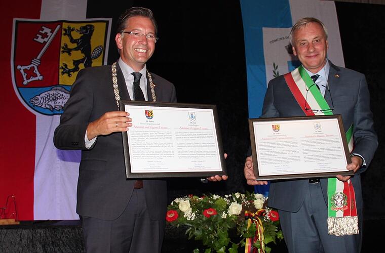 Nach 20 Jahren haben die Bürgermeister von Adelsdorf und Uggiate Trevano die Partnerschaft ihrer beiden Gemeinden erneuert.