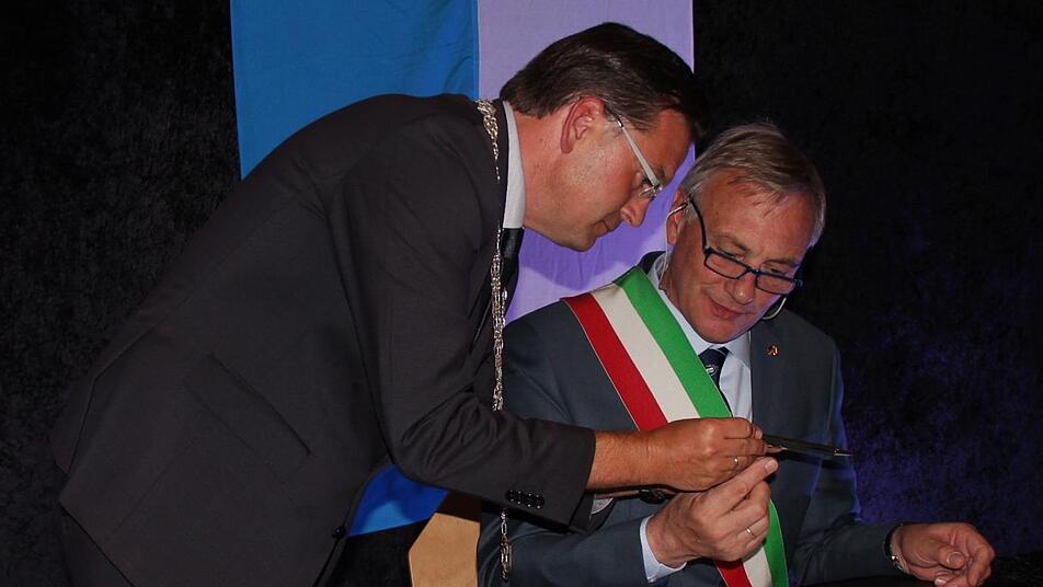 Höhepunkt des Besuches war am Freitagabend der Festakt mit der feierlichen Erneuerung der Partnerschaft durch die beiden Bürgermeister Fortunato Turcato und Karsten Fischkal (FW). Nach einem gemeinsamen Abendessen begrüßte Fischkal die Festgemeinschaft.