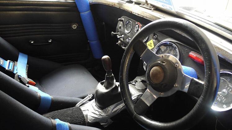 Auch der Austin Healey ist kein seltenes Auto. "Die Marke war in Großbritannien sehr populär, weil die Technik einfach war." Die Normalversion wog 1275 Kilogramm und hatte 69 PS. Kämpfs Modell wiegt nur 500 Kilogramm und schafft 100 PS mit der 1350-Kubik-Maschine. So wurde das Fahrzeug für reiche Schotten umgebaut, die eine Art Rennclub unterhielten und mit den Austins Rennen gegen Jaguar-Wagen fuhren.
