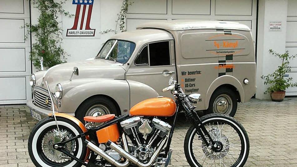 Das vorrangig seinen Kunden zugute kommt. Aber auch seinem eigenen Fuhrpark. In der Garage auf seinem Firmengelände stehen wohl abgedeckt diverse Oldtimer von Privatleuten und zwei eigene. Kämpfs Vorliebe gilt britischen Fahrzeugen. Den kleinen Kastenwagen nutzt er als Dienstfahrzeug. Von hinten fällt der nicht aus der Reihe, aber seine "Schnauze" entlarvt ihn - als Oldtimer.