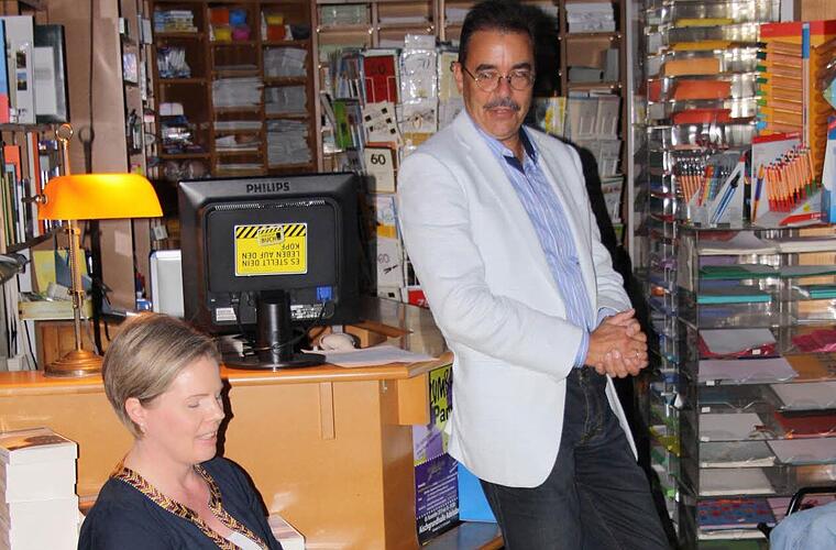 Zu Beginn gewährte Inhaber Christian Schmidt den zahlreichen Gästen einen Einblick in den Alltag der Buchmesse aus der Sicht eines Buchhändlers.