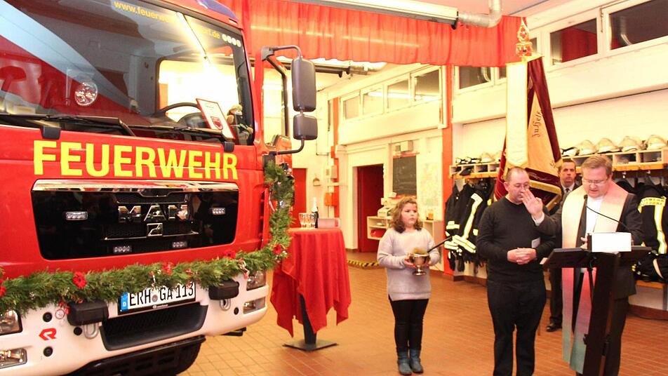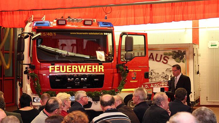 Auch Wolfgang Mattausch vom Fahrgestelllieferanten MAN und Alois Urban vom Feuerwehrausrüster Masson waren unter den Gästen und hatten Geschenke dabei. "Gott möge seine schützende Hand über das Fahrzeug und die Menschen halten, die mit ihm zum Einsatz fahren!", so die Geistlichen, und sie vertrauten Rosi, die unter dem Funknamen "Florian Adelsdorf 15/40/1" geführt wird, dem Schutz des heiligen Florian, dem Patron der Feuerwehrleute, an.