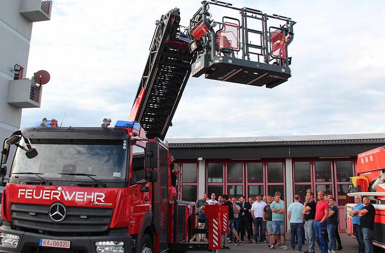 Erst vor etwas mehr als einem Jahr hat die Firma Rosenbauer die Firma Metz übernommen. "Es ist eine Rosenbauer Gelenk-Drehleiter mit Metz-Technologie", erklärte der zuständige Handelsvertreter vor Ort, Michael Schöner. Am Standort Karlsruhe werden seit über 100 Jahren Hubrettungsfahrzeuge hergestellt.
