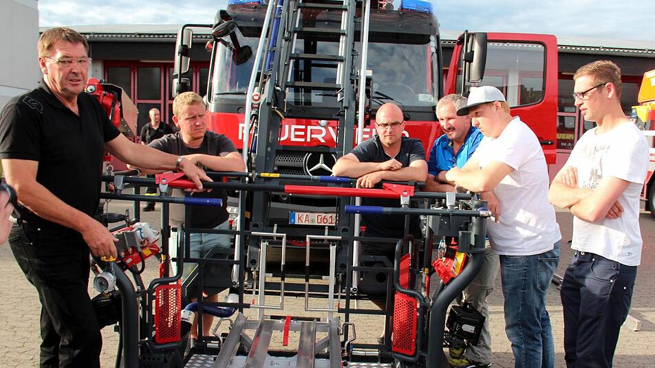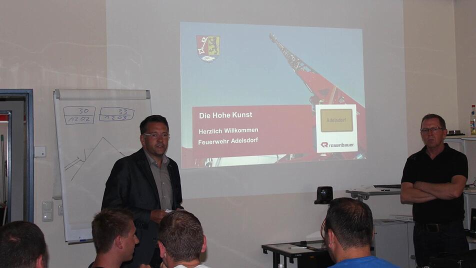Bei der Freiwilligen Feuerwehr (FFW) Adelsdorf fand am Dienstagabend die Präsentation eines Fahrzeugs mit Gelenk-Drehleiter unter der Überschrift "Die hohe Kunst" statt, und das Interesse war sowohl bei den Gemeinderäten als auch bei den Feuerwehrlern sehr groß.