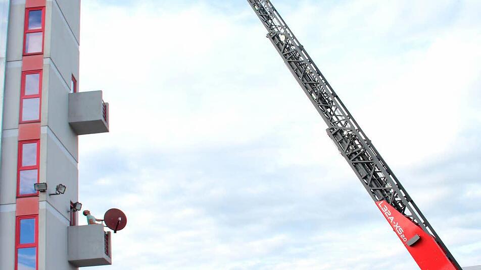 Im Praxisteil mit Frank Reinhard draußen auf dem Feuerwehrgelände bestiegen dann der Bürgermeister und die Gemeinderäte Erwin Bergner (FW), nebenbei auch Kommandant der Feuerwehr in Neuhaus, sowie Gerd Stingl (CSU) den Korb. Zusammen mit Frank Reinhard ging es hinauf in luftige Höhen. Allen Zuschauern wurden im Anschluss eindrucksvoll die Vorteile der Rettungs-Gelenkleiter gezeigt.