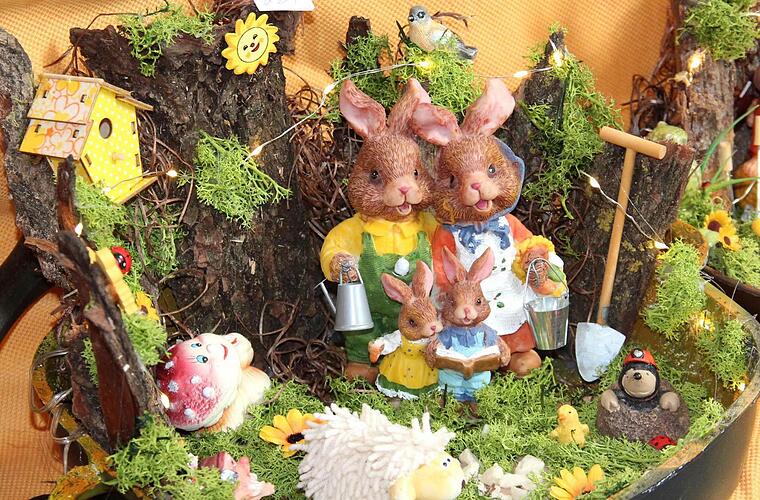 Das Angebot reichte von Natur- und Kunstgestecken sowie Arbeiten aus Holz, Filz und Wolle über außergewöhnlichen Schmuck, Patchwork und Stick- und Strickwaren bis hin zu selbst gefertigten Etageren. Selbst gebastelte, qualitativ hochwertige Osterdekoration war der Renner.