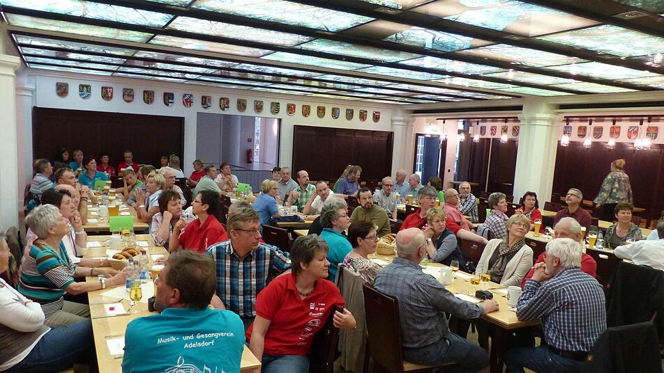 "Da Hof, die Heimat unseres ehemaligen Ortspfarrers Holger Fiedler eigentlich auf dem Weg liegt, hatten wir im Vorfeld auf Vorschlag von Johannes Brehm beschlossen, ihm einen kurzen Besuch abzustatten.", erzählte Barbara Martin, eine aus dem Führungsgremium des Vereins. Pfarrer Fiedler strahlte und freute sich, den Chor, der ihm schon so viele Gottesdienste in Adelsdorf "versüßt" hatte, zu begrüßen. "Da kamen wir endlich mal gemeinsam zum Singen", schwärmte Chorleiter Claus Keller, der sehr zufrieden war, dass er diesmal nicht die "Leitung" übernehmen musste.
