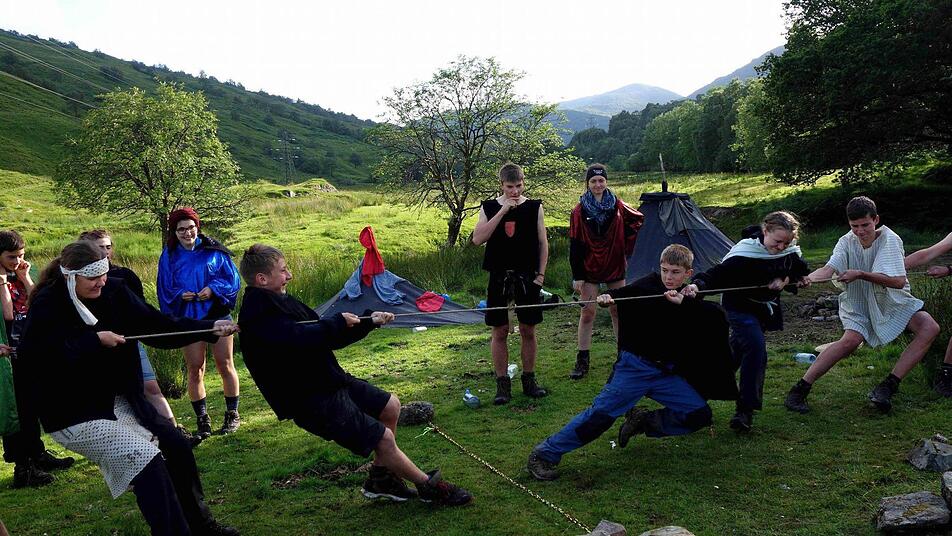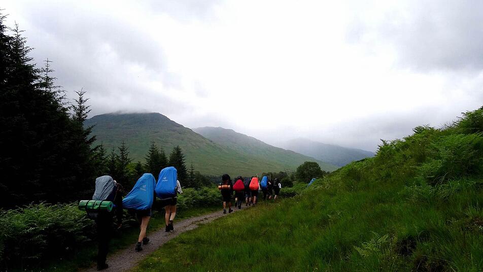 Gott sei Dank hatte es sich in der zweiten Woche ausgeregnet und mit mehr Sonnenschein konnten wir auf Sippenhaijk gehen. Eine Sippe besteht in der Regel aus fünf bis sechs Pfadfindern. Jede Gruppe machte sich in Crianlarich auf den Weg, immer auf einer anderen, vorgegebenen Route. Das gemeinsame Ziel war Glasgow. Zehn Tage lang durchstreiften wir die wunderschönen Wiesen, Wälder, Flüsse und Seen. Schottland ist echt super, die Menschen sind sehr nett, nur der schottische Dialekt ist etwas schwierig zu verstehen.