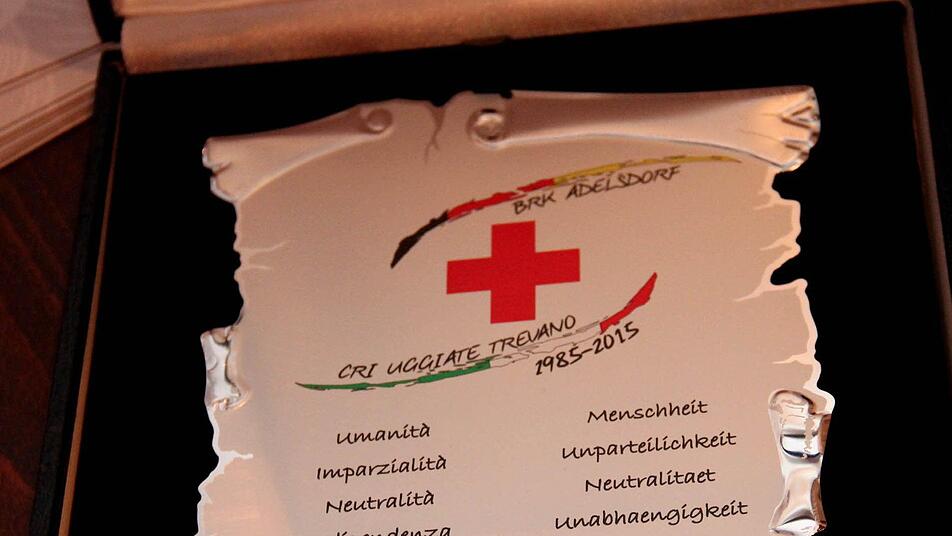 Das Adelsdorfer BRK und die Freiwilligen vom CRI (Croce Rossa Italiana/ Italienisches Rotes Kreuz) aus der italienischen Partnergemeinde Uggiate-Trevano feierten am vergangenen Samstag im Hotel Acantus in Oberlindach das 30-jährige Bestehen ihrer internationalen Rot-Kreuz-Verbindung.