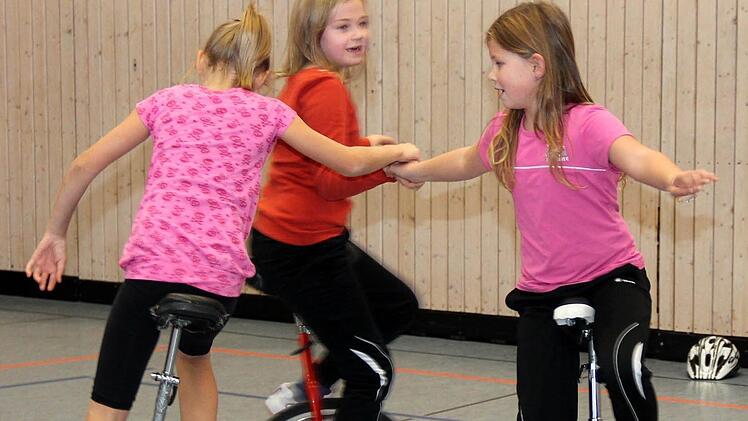 Die Jongleure, die Akrobaten, die Tellerdreher, die Einradfahrer, die wilden Tiger, Hochradfahrer, insgesamt zehn Gruppen üben ernsthaft. "Die Motivation der Kinder ist hoch und viele entwickeln den Ehrgeiz, alles perfekt zu können", sagt Rosi Wagner. Den Namen für die Gruppe legen die jungen Artisten am Ende selbst fest. Die Gruppe mit den großen Kugeln nennt ihre Nummer "Tanz der Zauberkugeln".