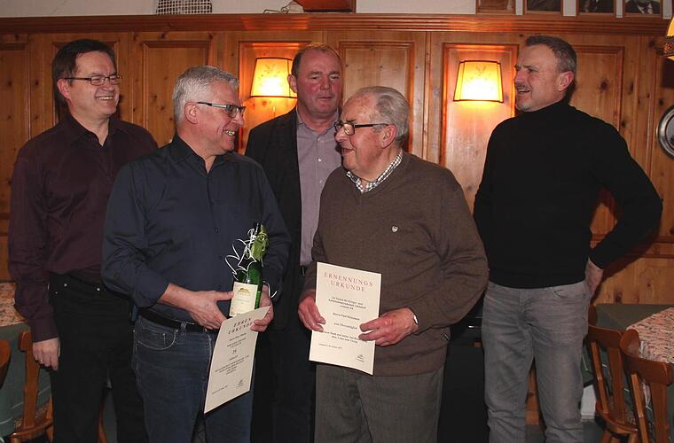 "Der Verein ist ein Traditionsverein und soll einfach weiter leben. Er gehört zum Dorf, und durch meine Mitgliedschaft kann ich ihn unterstützen", erklärte Mönius und freute sich über die Urkunde. In Abwesenheit wurde Franz Uhl für 40-jährige Mitgliedschaft geehrt.