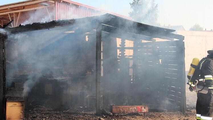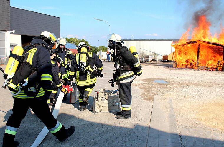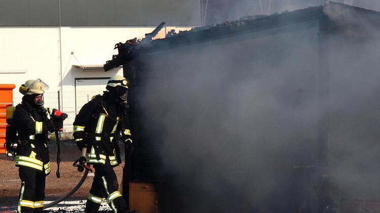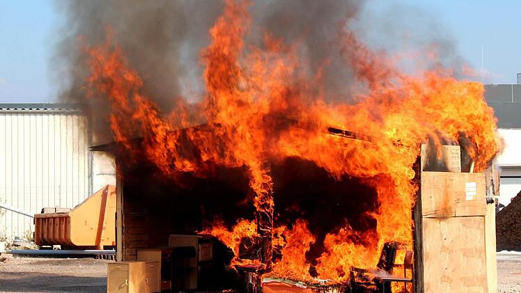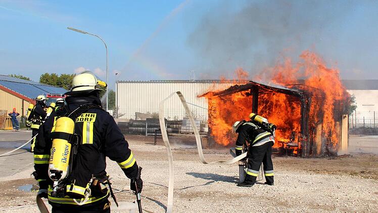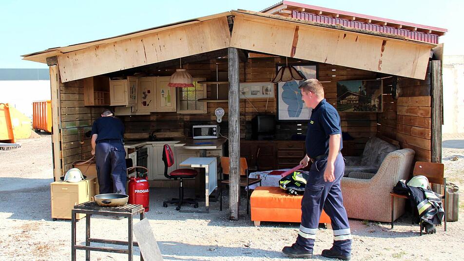 Natürlich brannte nach kurzer Zeit das ganze Häuschen, und mit Tatütata erreichten innerhalb kurzer Zeit zwei Löschfahrzeuge den Brandort. In zehn Minuten war alles unter Kontrolle. "Wenn weißer Rauch aufsteigt, ist das ein Zeichen, dass der Brand gelöscht ist", erklärte Jürgen Hörrlein weiter. Trotzdem suchte ein Feuerwehrmann mit der Wärmebildkamera nach weiteren Glutnestern.