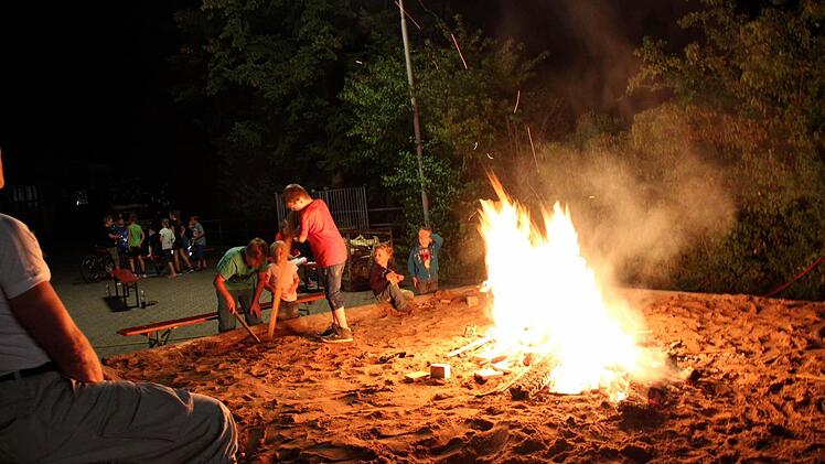 Zu später Stunde wurde das Lagerfeuer entzündet, und als Überraschung fuhr dann noch - natürlich im Feuerwehrauto - die Tanzgruppe Explosion aus Burghaslach ein und zeigte einen Schautanz. Ein Mitglied der Truppe ist bei der Adelsdorfer Feuerwehr.
