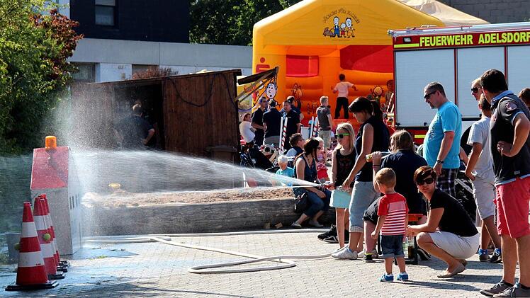 So mancher hätte sich gerne zwischendurch unter einen der Löschschläuche gestellt, um bei der Hitze etwas abzukühlen. Das herrliche Wetter und die sommerlichen Temperaturen lockten viele große und kleine Gäste schon am Nachmittag auf das Gelände der Freiwilligen Feuerwehr Adelsdorf, die zum Tag der offenen Tür geladen hatte.