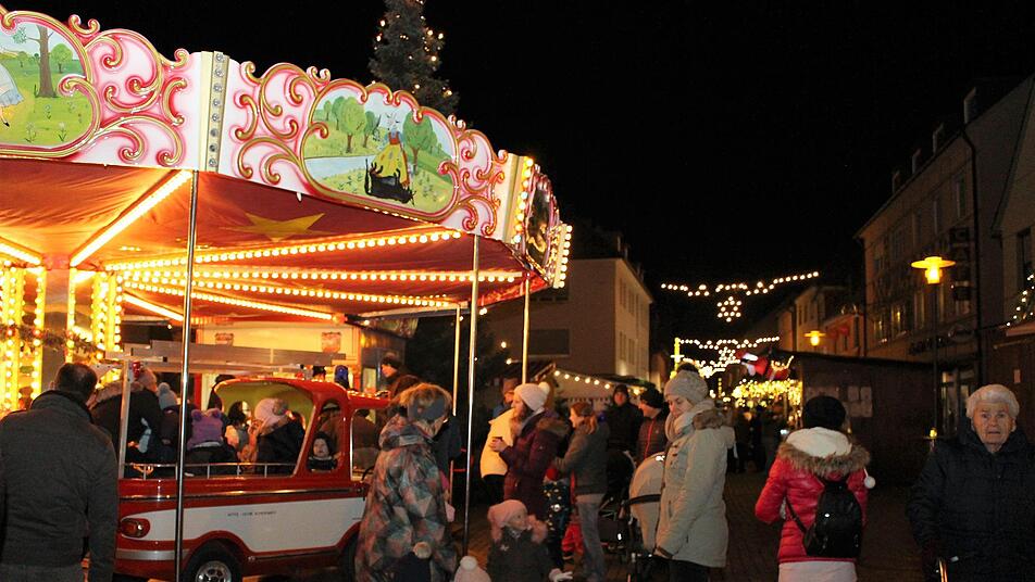 Zentrum des bunten Treibens war natürlich der Marktplatz. Über all dem Treiben hing der Duft von Glühwein und Bratwürsten. Die Buden der Vereine waren in ebenso glitzerndes Licht getaucht wie das Karussell, das die Kinderaugen zum Leuchten brachte.