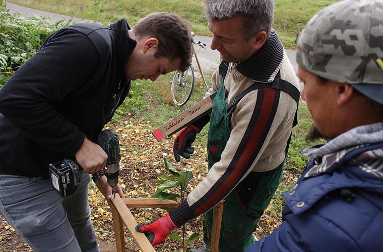 Einige ganz besondere Bäume pflanzten die Ailsbacher auch noch: Walnüsse. Nicht etwa, weil sie besonders schön oder sehr selten sind, sondern vielmehr wegen ihrer Verwendung. "Wenn die irgendwann mal ganz groß sind, können wir daraus einen Schnaps brennen", lacht Link. Und so haben die Ailsbacher am Tag der deutschen Einheit auch etwas für die Einheit im Dorf getan. Denn die erste Flasche des Schnaps wird sicher bei einem gemütlichen Abend zusammen im Hirtenhaus geköpft - auch wenn das noch etwas dauern dürfte.