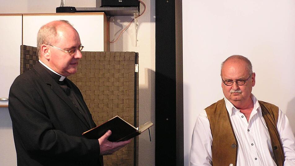 Bürgermeister Gerald Brehm hieß das Ehepaar Schramm mit ihrer Rückkehr nach Höchstadt und ihrem kulturellen Engagement für die Stadt herzlich willkommen. Auch Dekan Kilian Kemmer würdigte die Zusammenarbeit in der Vergangenheit mit Ausblick auf künftige Projekte und segnete sodann mit einem Gebet Kreuz und Vereinsarbeit.