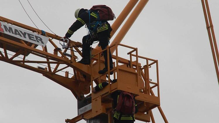 Dennoch war es spannend zum Beispiel zu beobachten wie zwei Feuerwehrmitglieder einen Mann vom Ausleger eines Kranes retteten. Da blieb so manchem regelrecht der Atem stocken, wenn man sah mit welcher Sicherheit sich die beiden Retter dort oben auf dem Ausleger bewegte. Selbstverständlich erhielt das "Opfer" ebenfalls einen gehörigen Applaus.