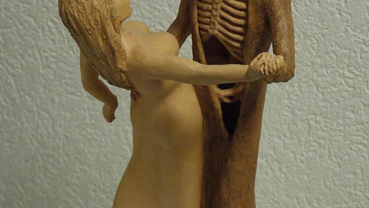 Ihre Spezialität sind Figuren, deren "Innenleben" man erst auf den zweiten Blick erkennt, wie das unter dem Mantel verborgene Gerippe des tanzenden Todes.
