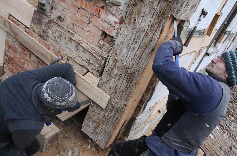 Dass das Töpfla in Höchstadts Hauptstraße eine Sehenswürdigkeit werden wird, merkt man schon jetzt. Die Passanten drehen sich nach dem Fachwerkhaus um oder bleiben stehen, um den Handwerkern zuzusehen. Denn alle Tage kann man eine Restaurierung eines fast dreihundert Jahre alten Gebäudes nicht mitverfolgen.