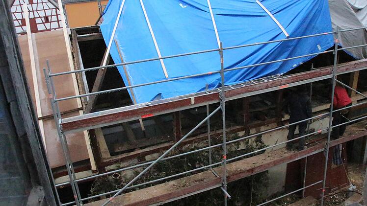 Historische Fenster werden saniert, jüngere im alten Stil nachgebildet. Der Stuck an den Decken - in Höchstadt selten zu finden - wird wieder hergerichtet. Im Moment arbeiten sechs Zimmerer auf der Baustelle.