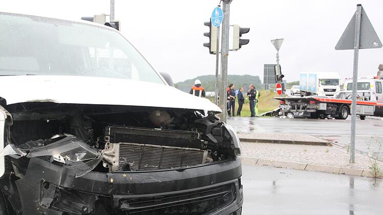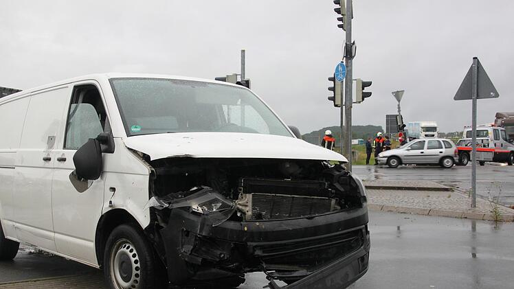 Ein 31-jähriger Fahrer eines VW-Transporters fuhr vom Gewerbegebiet kommend auf die Kreuzung, übersah jedoch einen heranfahrenden silbernen Ford. Dessen 59-jährige Fahrerin war in Richtung Höchstadt unterwegs, als sie der Transporter an der Fahrerseite traf.