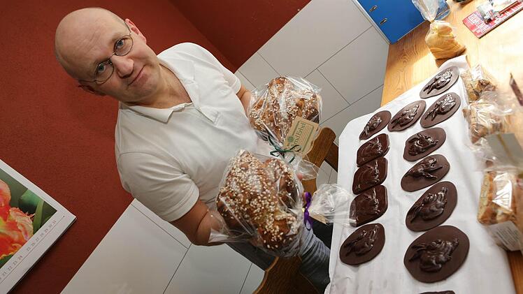 Dass der 44-Jährige dereinst in die Fußstapfen der Dachsbacher Erbels und ihrer Bäckerei treten würde: Daran bestand kein Zweifel. Gilt es doch in diesem Jahr den 333. Geburtstag des Familienbetriebs zu feiern. Einer musste ran, und Arnd Erbel tat es gern. Heute führt er den Betrieb mit rund 20 Angestellten, der Vater hilft noch aus, die Frau arbeitet mit, Tochter und Schwiegersohn. Eben ein Familienunternehmen, immer noch. Zwei eher unscheinbare Verkaufsstellen in Dachsbach und Neustadt an der Aisch führen das Sortiment des selbst ernannten "Freibäckers".