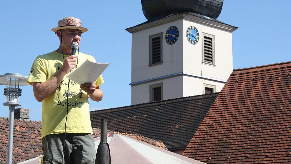 Kein Blatt vor den Mund nahmen die "Aschbier Kerwasburschen" bei ihrer Kirchweihpredigt am Samstag, die traditionsgemäß direkt vor dem Aufstellen der Kirchweihfichte erfolgte. "Eine Stelle als Tagesschausprecherin" schlug Vorträger Jonas der Mitbürgerin vor, die ihr Privatleben offensichtlich ausführlich in einem sozialen Netzwerk präsentiert. Und auch für diejenigen Mitbürger, die der Unterbringung von Asylbewerbern in Aschbach mehr als skeptisch gegenübergestanden hatten, gab es einen Seitenhieb: "Allemal besser diese hilfsbedürftigen Menschen, die sich ganz offensichtlich anständig benehmen, als die einheimischen Rowdys, die zurzeit ohne Rücksicht auf Mitmenschen nachts lärmen und schreien und nur Unruhe ins Dorf bringen." Die Kerwapredigt eines kleinen Ortes bot also durchaus Denkanstöße, die weit über seinen unmittelbaren Umkreis hinausgehen. Nachzulesen ist sie in einigen Wochen auf der Internetseite der Burschen unter www.Aschbier-Kerwasburschen.de .