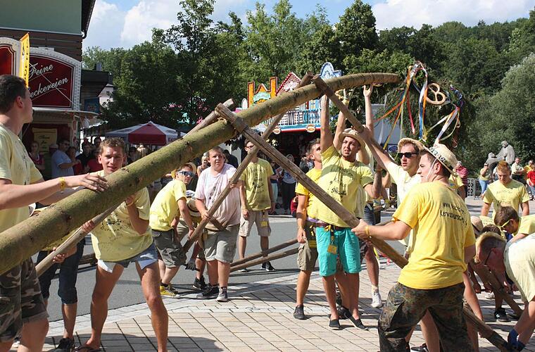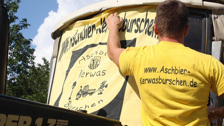 Apropos 30 Männer: Die Aschbacher sind stolz darauf, dass sie noch eine richtig traditionelle Kerwasburschen-Gruppe sind: Man muss mindestens 16 Jahre alt sein, unverheiratet und Frauen haben keinen Zutritt. Kerwasbursch Jochen meint schmunzelnd: "Vielleicht ändert sich das ja irgendwann mal, aber Männer brauchen ja schließlich auch einen Platz, wo sie mal unter sich sind." Die gesamte Kerwa liegt in ihren Händen und da müssen schon alle kräftig mit anpacken.